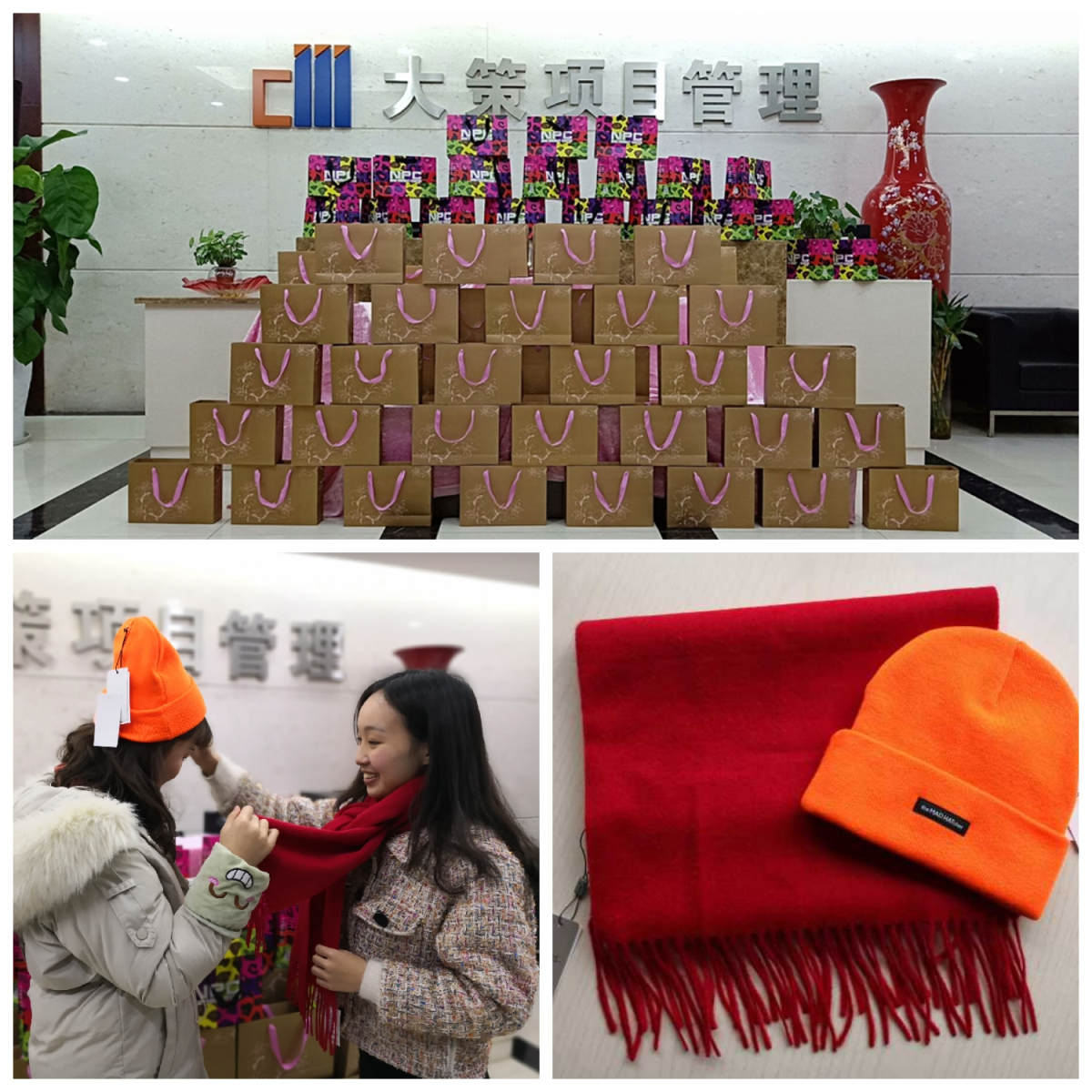 出行前,公司為每一位員工送上了早已精心選備好的禮物,給寒冷的冬天添上了一抹靚麗的色彩與濃濃的溫情。