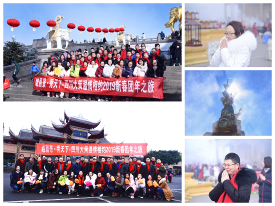 快樂的時(shí)光總是那么短暫,團(tuán)聚的日子特別讓人珍惜和動(dòng)容,這次的峨眉團(tuán)拜之旅在歡聲笑語(yǔ)中結(jié)束了,雖然我們無(wú)法阻攔時(shí)間的飛逝,但我們可以主宰自己的心靈。這次團(tuán)年之旅再次體現(xiàn)出我們是一個(gè)團(tuán)結(jié)互助,充滿活力,積極面向未來(lái)的大集體,愿我們能一直手拉著手,承前啟后、繼往開來(lái)、再創(chuàng)大策輝煌的明天!