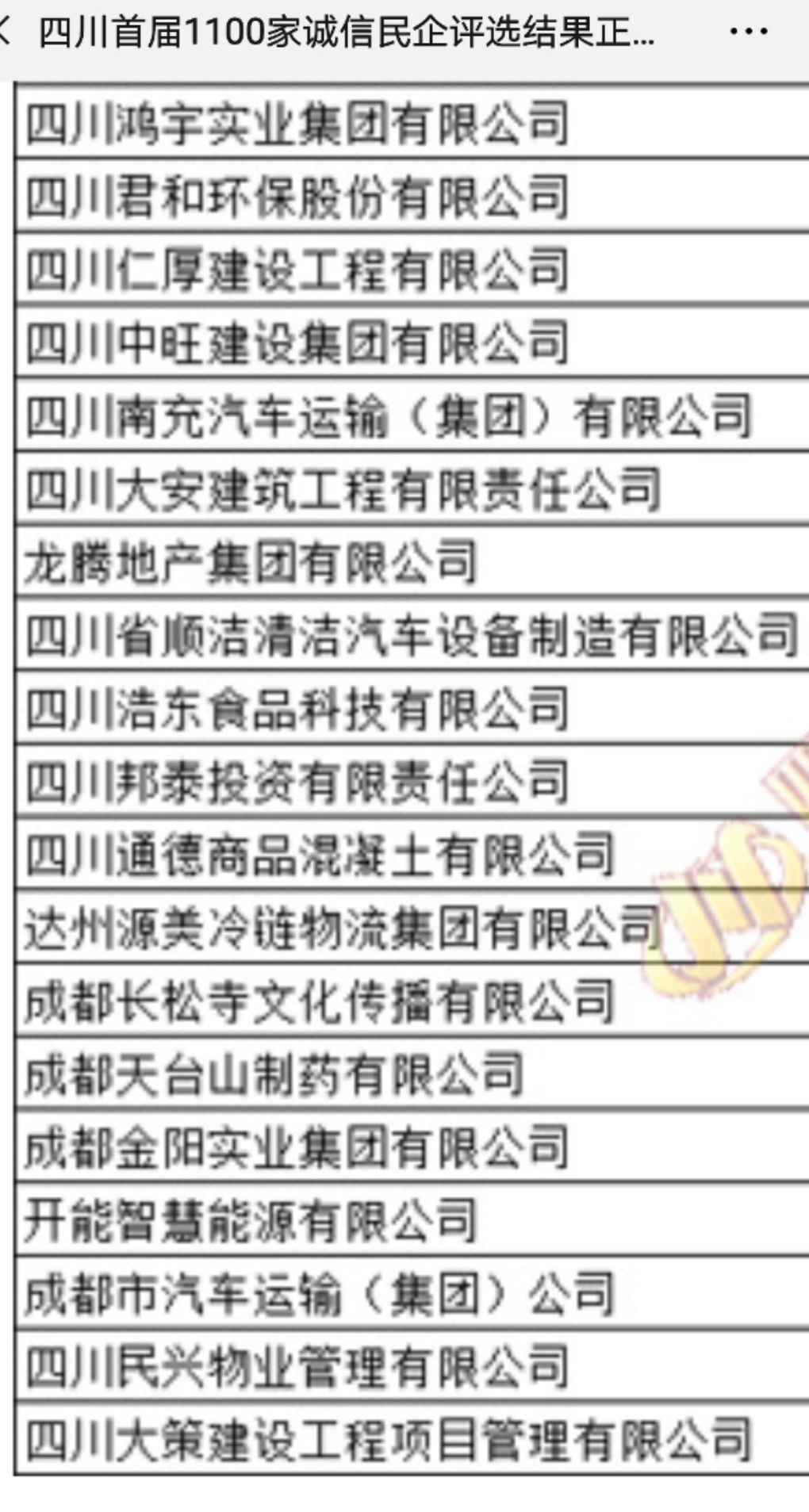 自2019年5月網(wǎng)絡(luò)報名通道正式開通以來,“誠信百千工程”評選活動得到了省內(nèi)眾多企業(yè)的廣泛關(guān)注。在法律顧問和公證人員的監(jiān)督下,由17部門及社會專家組成的22名專家評審團最終評選出了1100家“四川省誠信民營企業(yè)”。獲評企業(yè)將納入信用中國(四川)網(wǎng)站紅榜名單,并享受省級相關(guān)部門聯(lián)合出臺的激勵政策。我公司成功入選。
