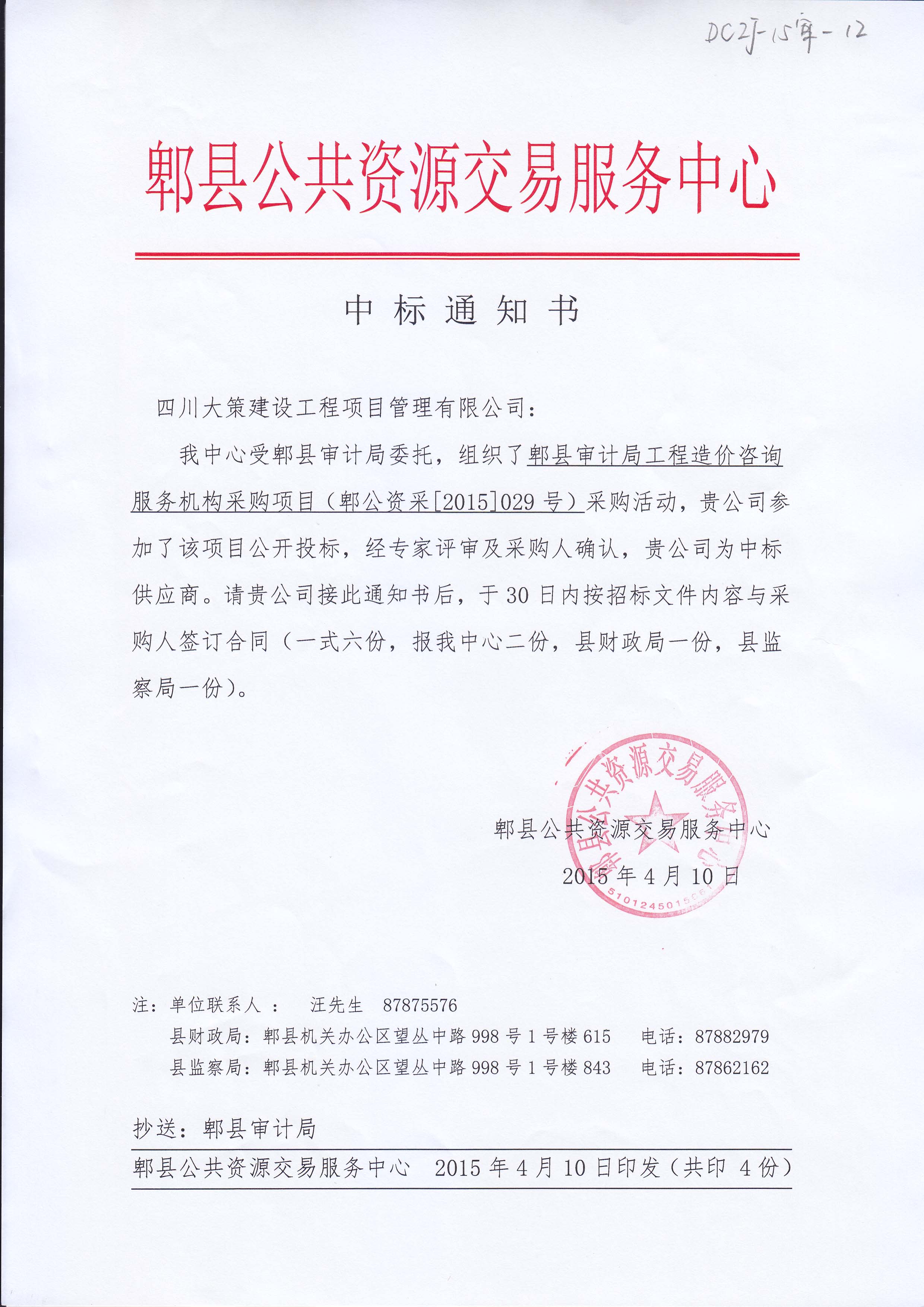 2015年公司各審計(jì)局中標(biāo)項(xiàng)目一覽