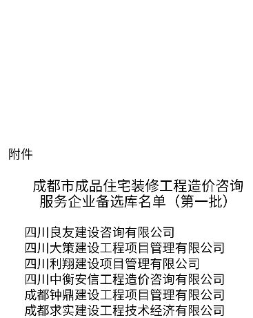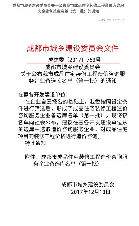 我公司入庫成都市成品住宅裝修工程造價咨詢服務企業(yè)備選庫