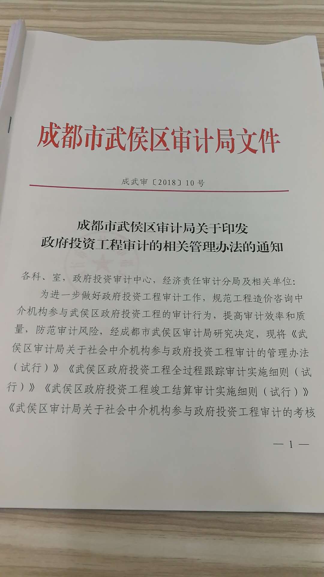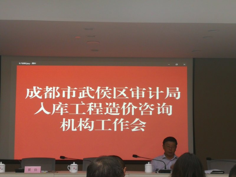 9月7日成都市武侯區(qū)審計(jì)局召開“成都市武侯區(qū)審計(jì)局入庫工程造價(jià)咨詢機(jī)構(gòu)工作會”。邀請本市優(yōu)秀造價(jià)企業(yè)的主要負(fù)責(zé)人參與,我公司張總受邀參與此次會議。