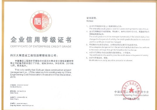 企業(yè)信譽(yù)等級(jí)證書(shū)